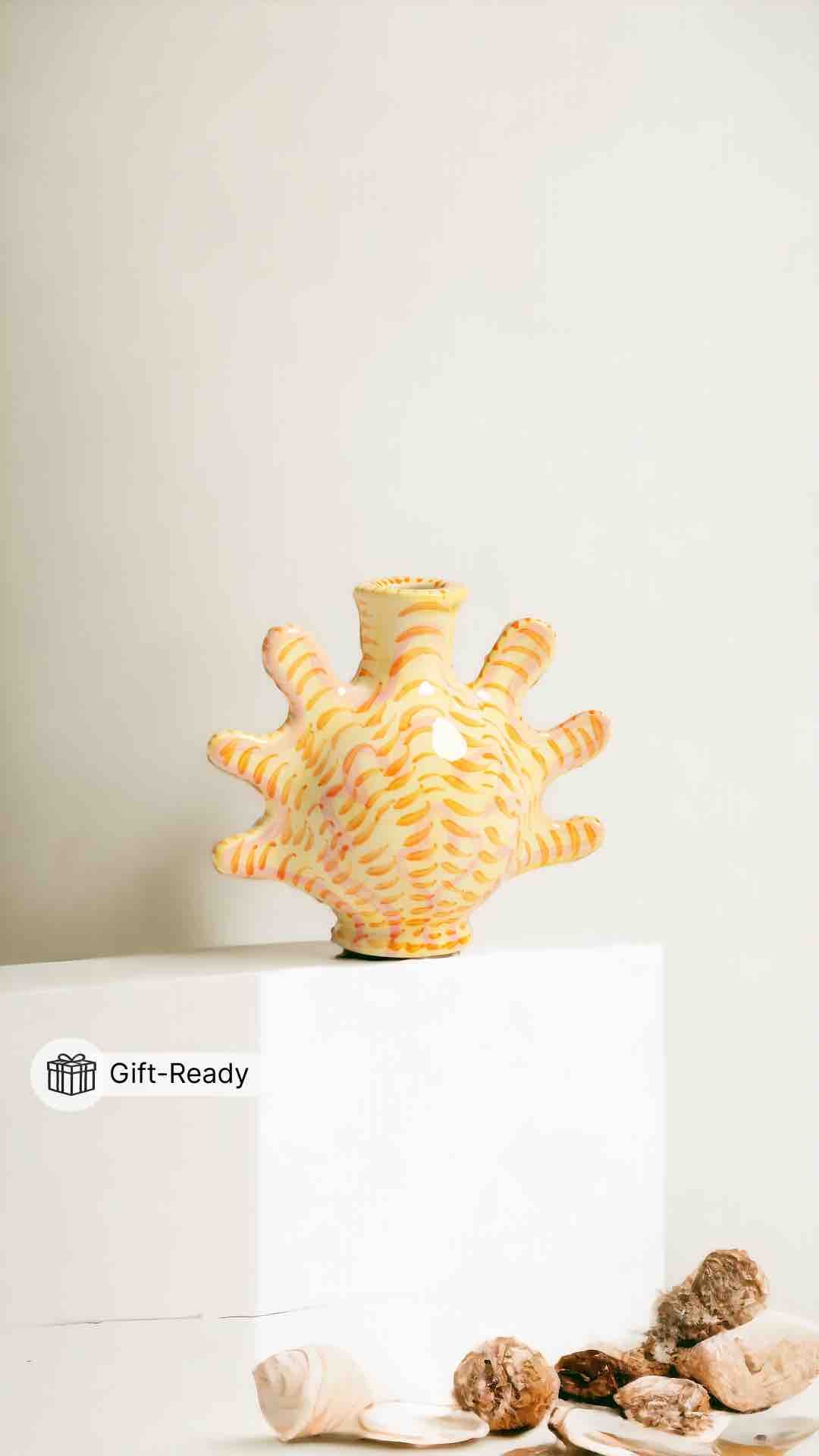 Designed in the Netherlands and meticulously hand-painted, each piece showcases a unique blend of colors, reminiscent of the stunning hues found in coral reefs. Crafted from high-quality stoneware, this vase makes the perfect centerpiece for any table or mantel.
