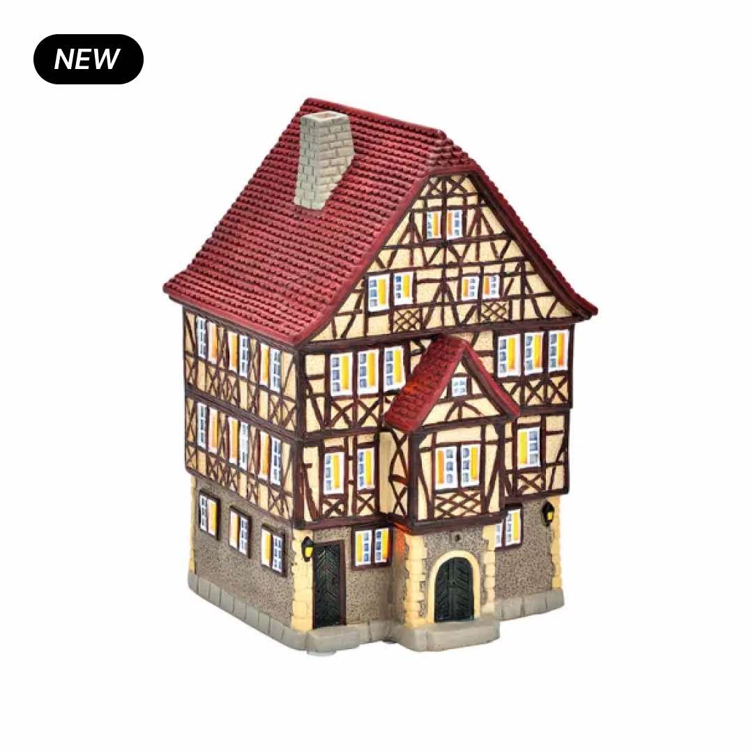 Introducing our delightful "Bad Wimpfen House" a porcelain tea-light house that brings a slice of German charm to your decor. This beautifully crafted piece features the architectural essence of Bad Wimpfen, with colorful facades and detailed windows that glow warmly when lit, creating a cozy atmosphere.