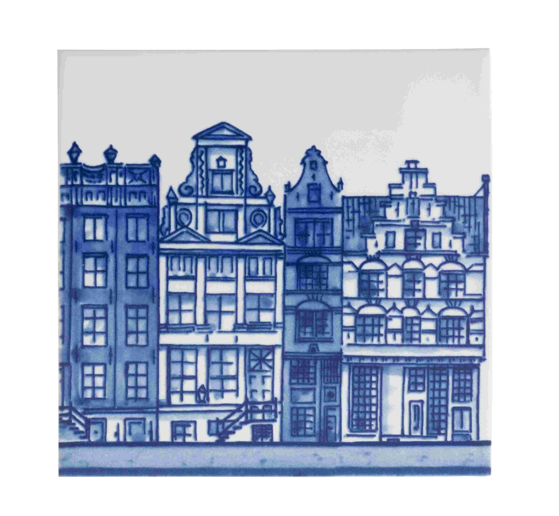 Introducing a stunning set of Royal Delft Canal House Tiles, perfect for adding a touch of classic Dutch charm to your home. Each tile in this set features a beautifully detailed depiction of stately Amsterdam canal houses, brought to life in Delft Blue through traditional screen printing. This set of five tiles showcases the iconic architecture of Dutch canal houses, capturing the essence of Amsterdam's timeless beauty.