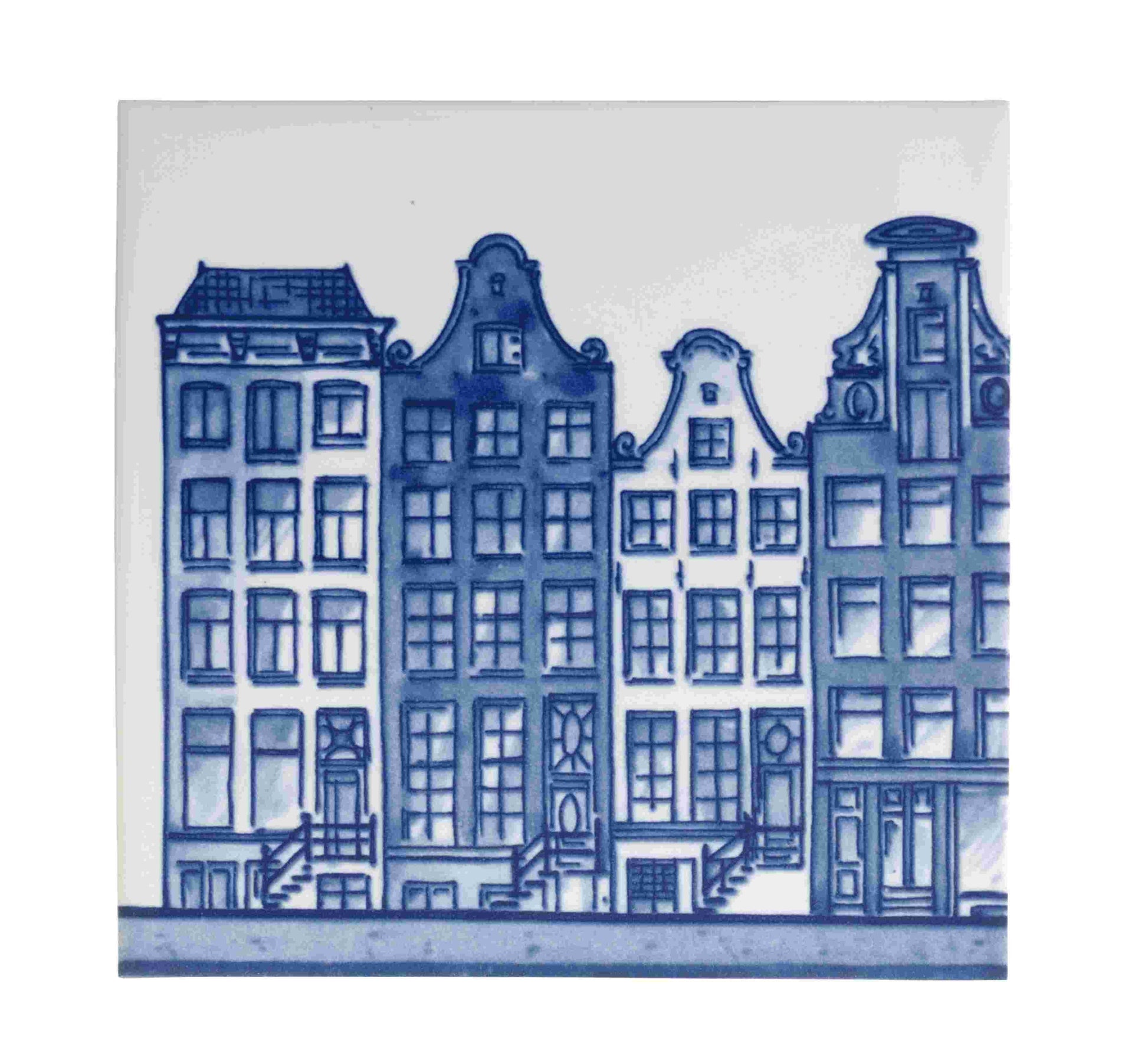 Introducing a stunning set of Royal Delft Canal House Tiles, perfect for adding a touch of classic Dutch charm to your home. Each tile in this set features a beautifully detailed depiction of stately Amsterdam canal houses, brought to life in Delft Blue through traditional screen printing. This set of five tiles showcases the iconic architecture of Dutch canal houses, capturing the essence of Amsterdam's timeless beauty.