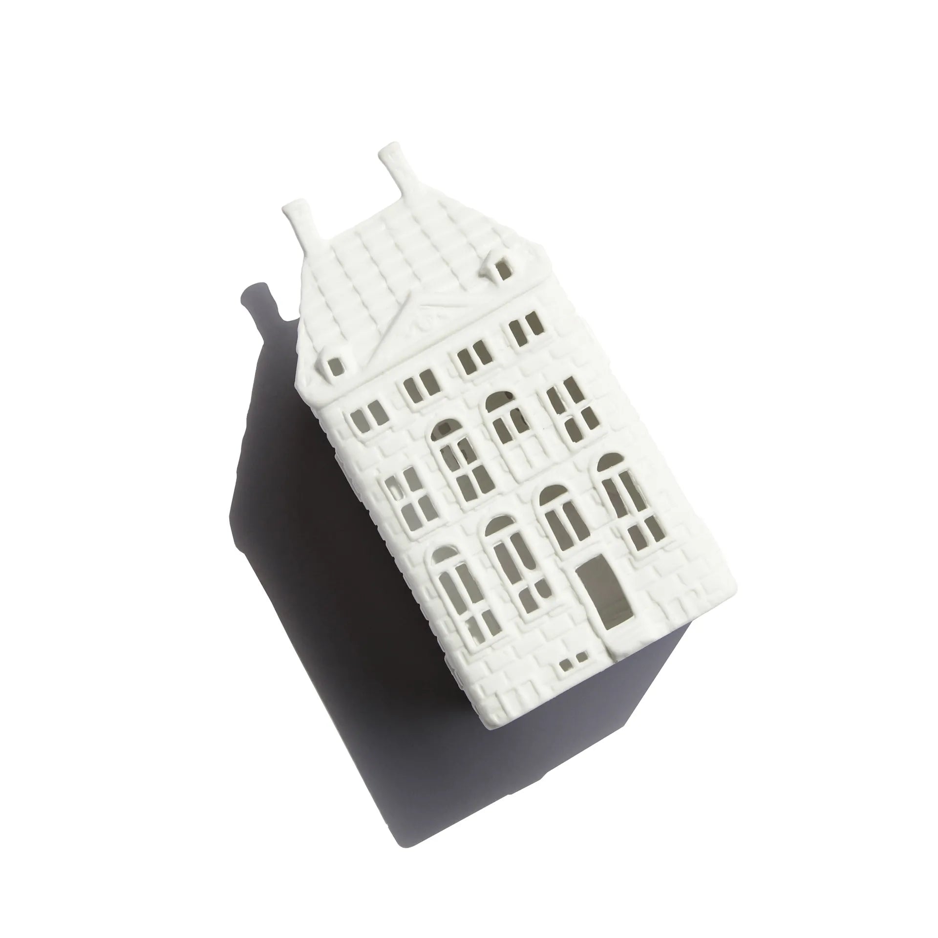 Each white ceramic Dutch house is a miniature homage to the enchanting canal homes of the Netherlands. Designed to radiate warmth and old-world charm when illuminated from within with a tea light candle.